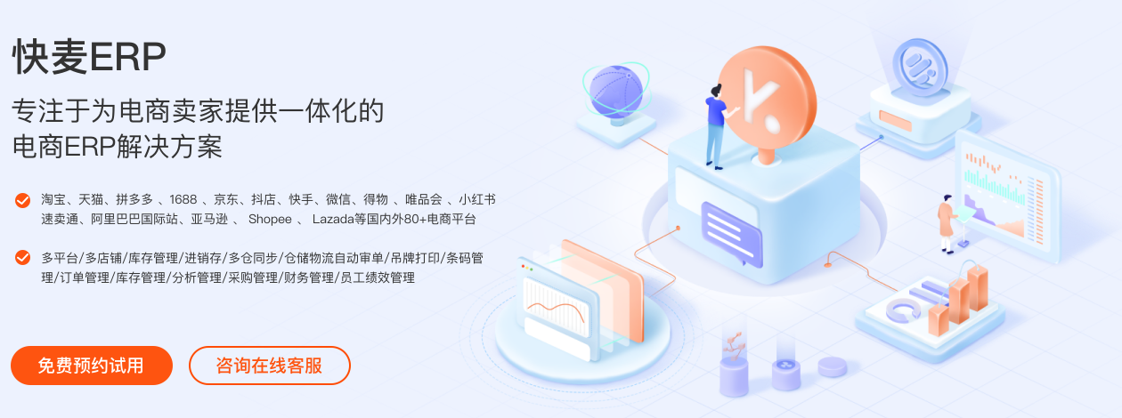 旺店通和聚水潭都还是不错的,虽然没有使用它们,但品质高口碑大家都是有目共睹的。同样的还有一款快麦ERP,我们店用了快麦ERP之后觉得使用起来确实还不错的,首先它可以实现高复用和零代码来帮助大卖家更有效地管理商品订单。在商品入库时,快麦ERP也可以支持快速采购,通过识别唯一代码进行入库和出库管理。入库后的任何数据,企业也可以在后台操作统计数据,一键将商品分发到各个门店和平台,实现统计数据的快速更新。
